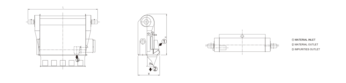经过清理的物料直接进入出料斗。压力活门在物料重力作用下开启,物料排出,进入下道工序。